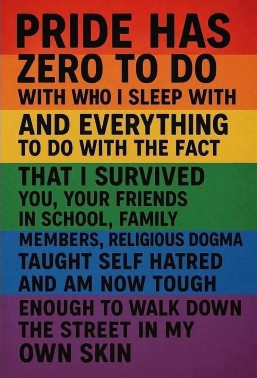 It's Pride weekend in NYC. I normally love June...and feast on Pride all month. This year, the most I've done was get to Rockefeller Center last week because it's one of the few places in NYC that had no problem hanging Pride flags. 47 has corporations, schools, politicians, and lots of folks running scared. In 2019, and again in 2021, I remember seeing a lot of businesses hanging Pride flags throughout the city. And every year since I began working in NYC, the US building across the street from the UN would drape many large Pride flags in its windows. But not this year. It’s heartbreaking. And at the same time, it shows us who our allies really are.